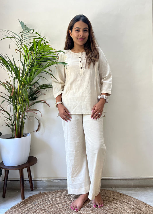 Oatmeal Handloom Kurta-S