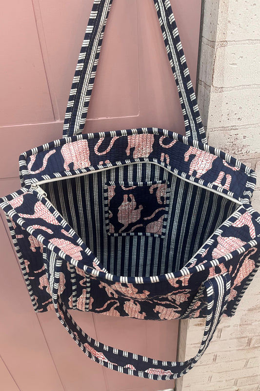 Sold outNavy block printed bag-large