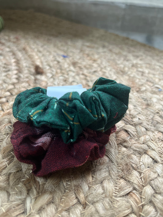 Sold outMaroon and green Ikat scrunchie